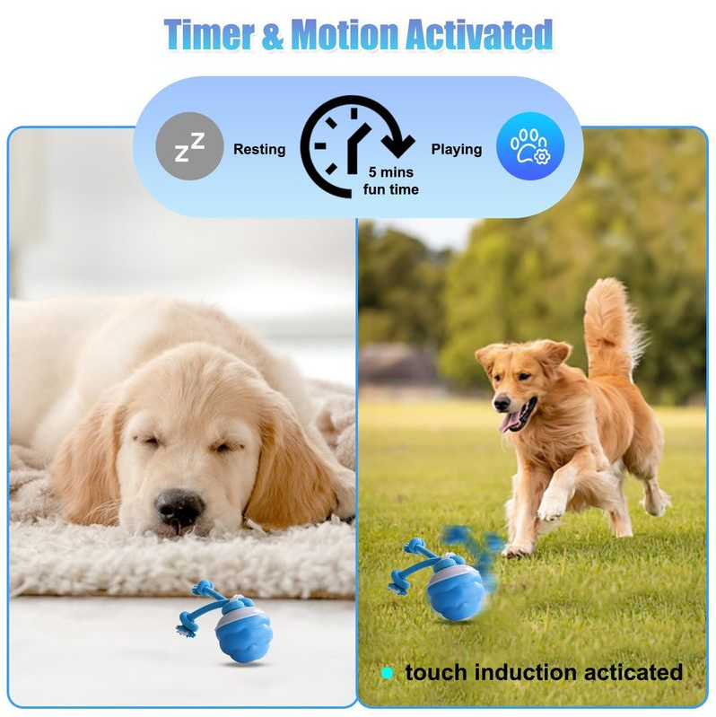 You've been there before. You bring home a new toy, your dog plays with it for ten minutes, and then it sits forgotten in the corner collecting dust. You've spent hundreds on squeaky toys, rope toys, puzzle toys—but nothing holds their attention. The problem isn't your dog, it's that traditional toys are completely predictable. Once your dog figures them out, the excitement is gone. Our intelligent rolling ball is different because it never behaves the same way twice. Advanced motion sensors detect every touch and trigger unpredictable rolling patterns that mimic real prey. One moment it rolls fast, the next it changes direction, keeping your dog guessing and engaged. Built-in chirping sounds amplify their natural chase instinct. Three activity modes mean the challenge evolves—fast for energetic play, slow for gentle engagement, interactive for problem-solving. And here's the best part: it automatically reactivates every hour throughout the day, so the novelty never wears off. Stop wasting money on toys that end up ignored. Give your dog the one toy they'll genuinely get excited about—every single time.